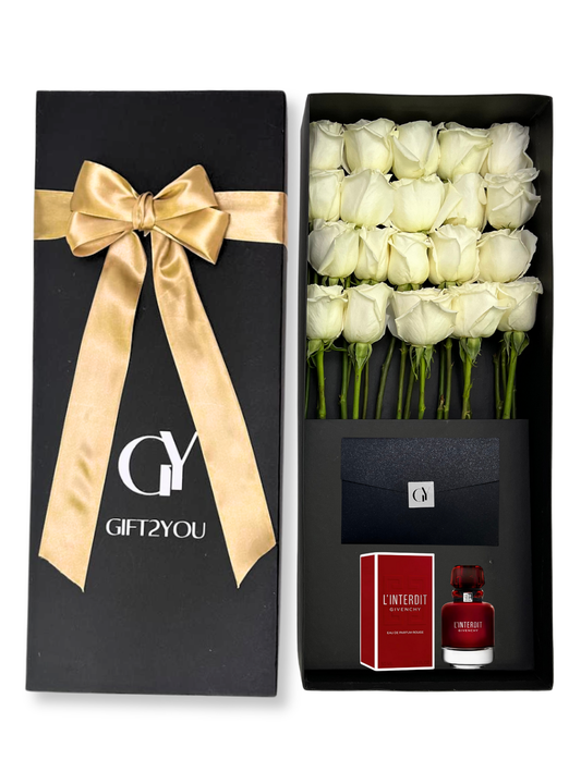 Set Perfume + Velas Aromáticas + Rosas Rojas
