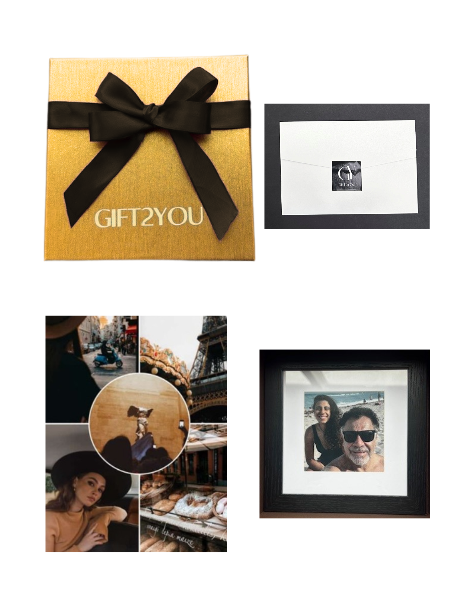 Un detalle pensado para transmitir afecto y cercanía. Incluye una collage fotografico personalizado por Gift2You, enmarcado en elegante marco de madera que realza su valor. Se acompaña de una tarjeta de saludo personalizada, con una frase inspiradora o alusiva al obsequio. Incluye: