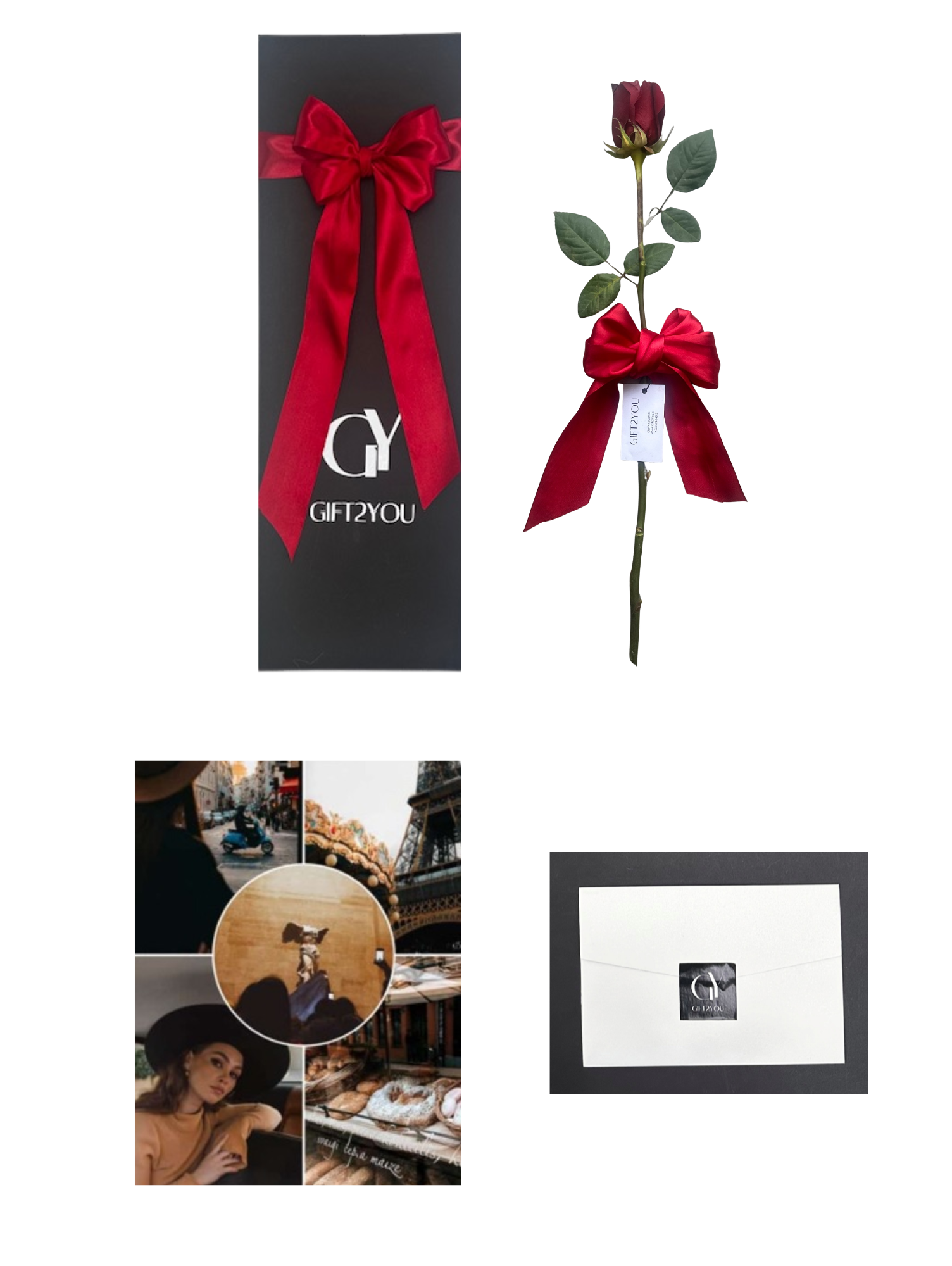 Un detalle pensado para transmitir sentimientos, afecto y cercanía. Incluye un collage de fotos personales, cuidadosamente armado en Gift2You unido con expresiva rosa roja, que realza el valor emocional de este presente. Se acompaña de una tarjeta personalizada, con una frase inspiradora o alusiva al motivo del saludo. Incluye: