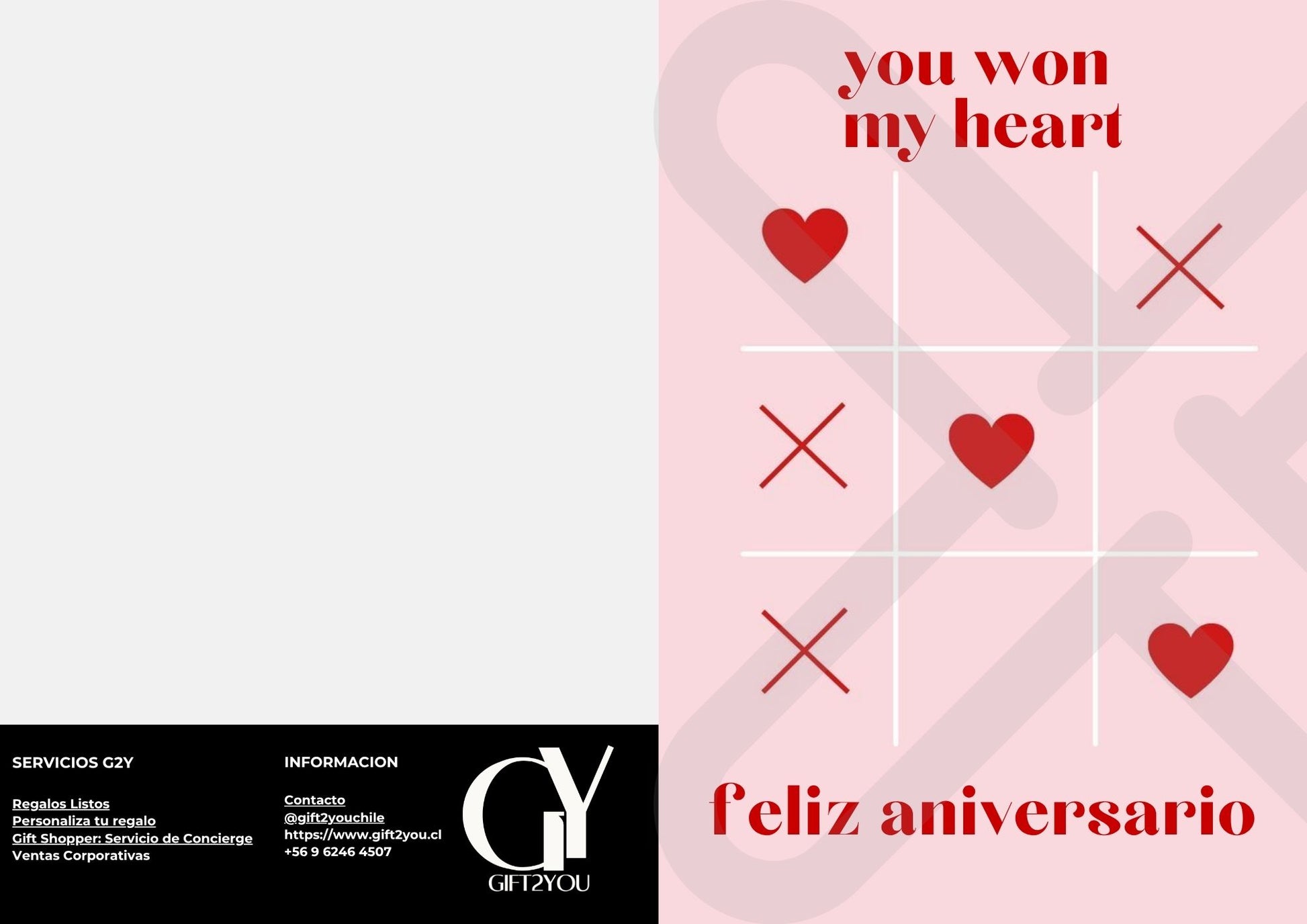 Una tarjeta romántica y minimalista. Con la frase “You won my heart”, es ideal para recordar a tu pareja que conquistó tu corazón desde el primer día.