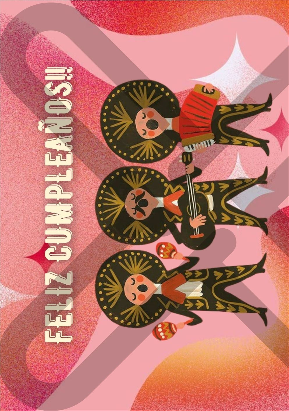 Una tarjeta alegre y original que celebra con todo el estilo mexicano. Con mariachis cantando y mucho color, es perfecta para acompañar tu regalo de cumpleaños y llenar de música y buena onda el día especial.