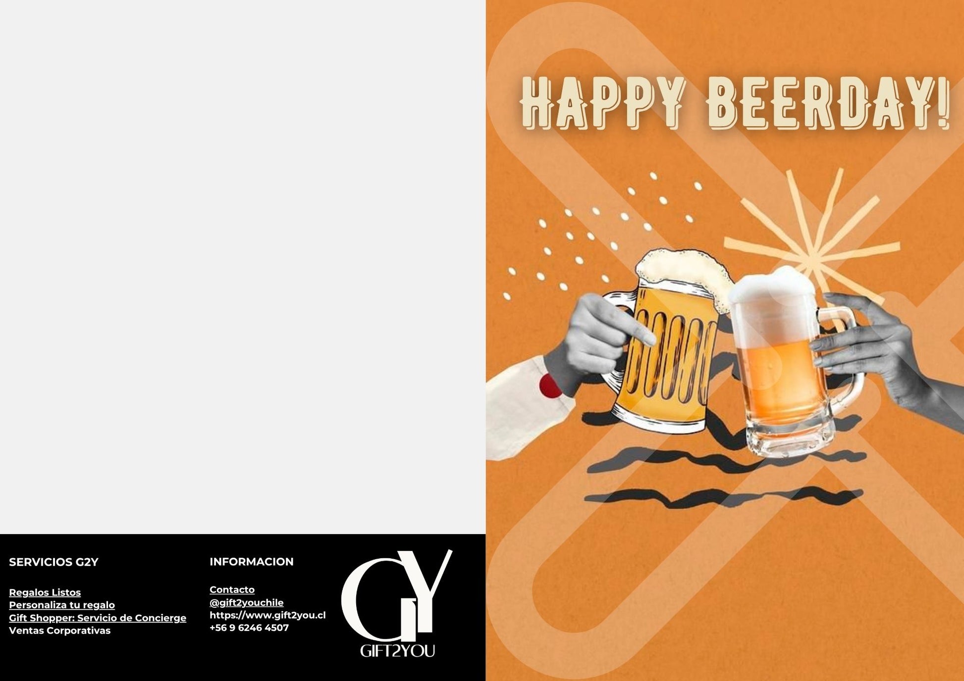 Tarjeta de saludo para cumpleaños, con un diseño alegre y festivo ideal para los amantes de la cerveza. Perfecta para acompañar tu regalo y celebrar con un brindis lleno de buena onda.